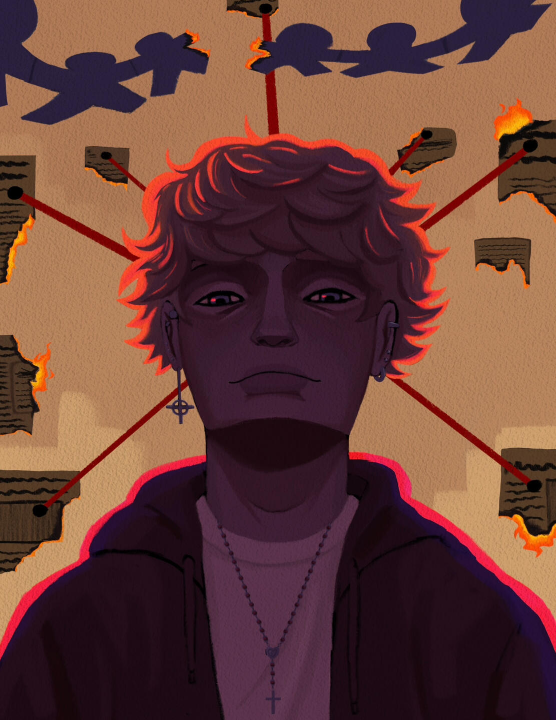 Jonah is a quick-witted, kind, and considerate person. He had been in the adoption system until he was around six years old. He was adopted by his parents as a PR stunt due to the company they own having a slightly poor public image but his mother refused to get pregnant. He never really fit in.He meets Adam in high school when his family moves in town to get him to socialize with kids his age. It took a couples weeks before Adam warmed up to him and they became inseparable. During their final year, Jonah is informed that the family must leave for a two year business trip upon his graduation. He promises Adam to return immediately afterwards.Two years passed and upon returning, Jonah finds himself waking up in the middle of the woods with scars across his face, a different coloured eye, and his best friend acting strangely. Now that people are suddenly dying, the two take it upon themselves to investigate the town, it's history, and what happened that night in the woods.