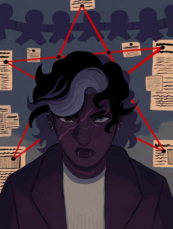 Jonah is a quick-witted, kind, and considerate person. He had been in the adoption system until he was around six years old. He was adopted by his parents as a PR stunt due to the company they own having a slightly poor public image but his mother refused to get pregnant. He never really fit in.He meets Adam in high school when his family moves in town to get him to socialize with kids his age. It took a couples weeks before Adam warmed up to him and they became inseparable. During their final year, Jonah is informed that the family must leave for a two year business trip upon his graduation. He promises Adam to return immediately afterwards.Two years passed and upon returning, Jonah finds himself waking up in the middle of the woods with scars across his face, a different coloured eye, and his best friend acting strangely. Now that people are suddenly dying, the two take it upon themselves to investigate the town, it's history, and what happened that night in the woods.